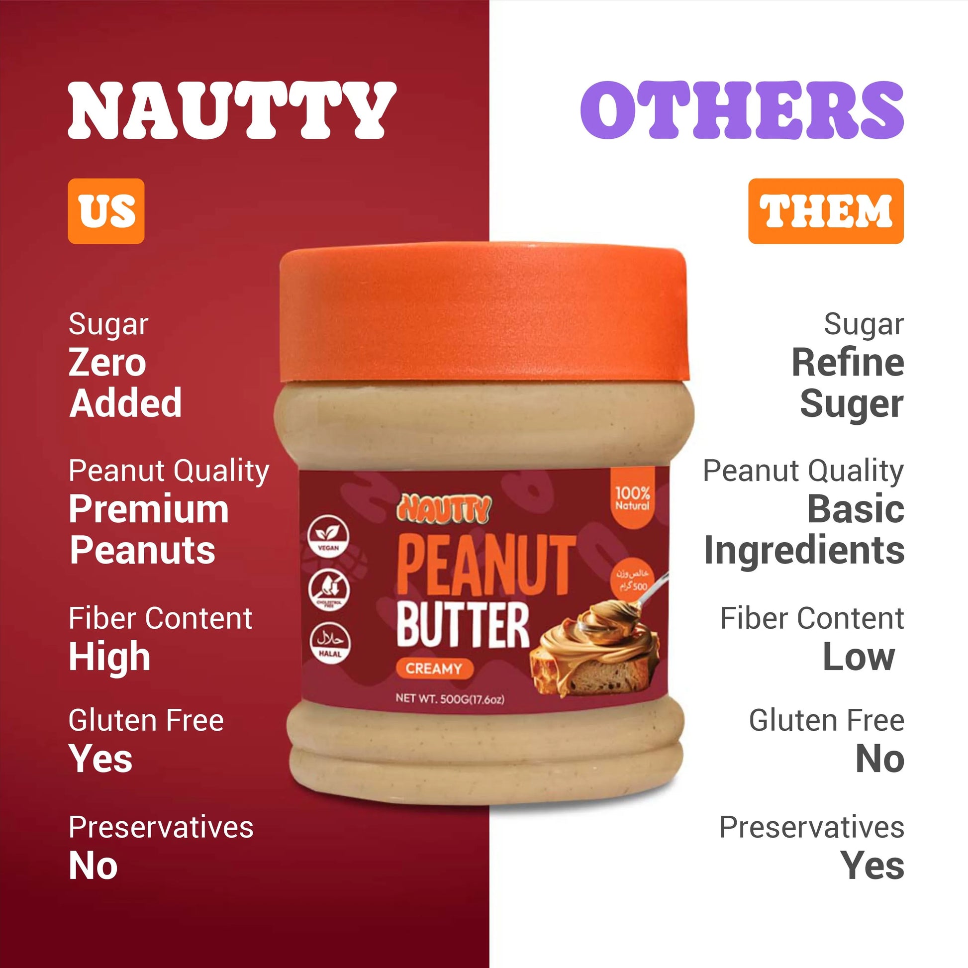 Nautty’s 500g Creamy Peanut Butter is made from 100% organic, locally sourced peanuts — nothing artificial, no preservatives. Just silky smooth peanut goodness crafted under hygienic conditions, perfect for your morning toast, shakes, or spoonful cravings.
